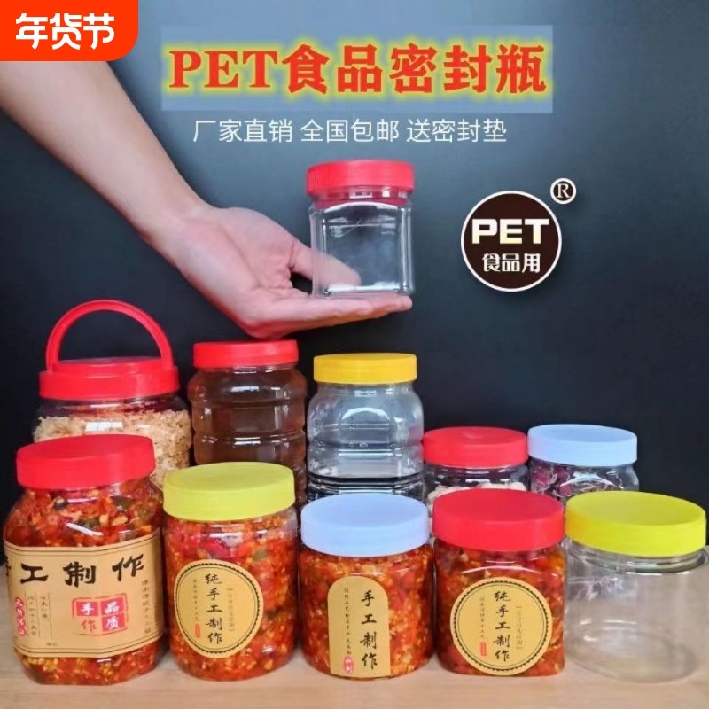 食品级一斤加厚塑料瓶半斤辣椒酱瓶子密封罐芝麻酱咸菜瓶防漏透明