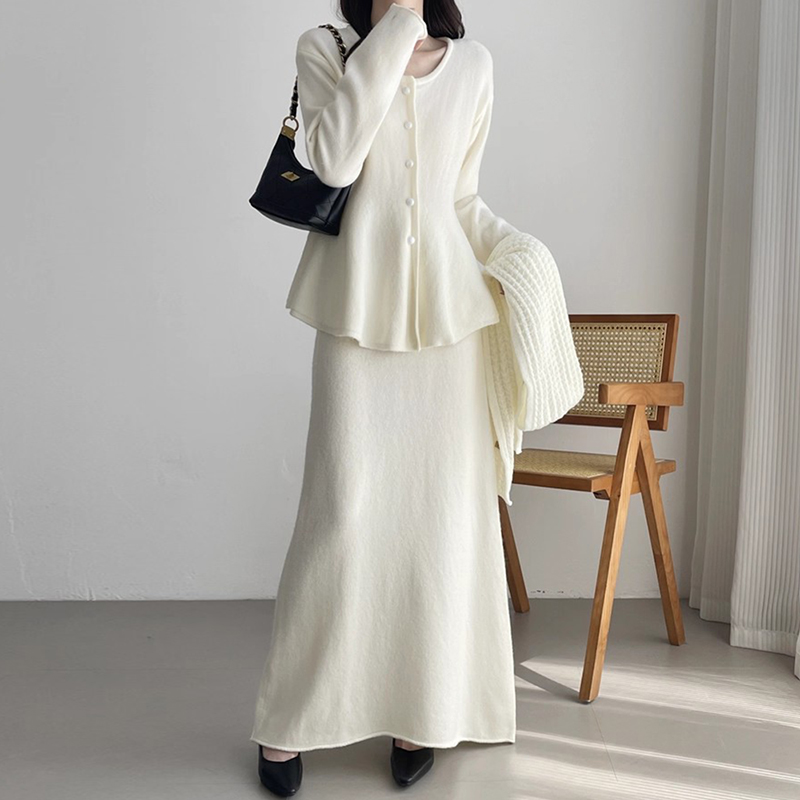 冬季套装连衣裙气质荷叶边上衣+高腰显瘦百搭半身长裙针织两件套