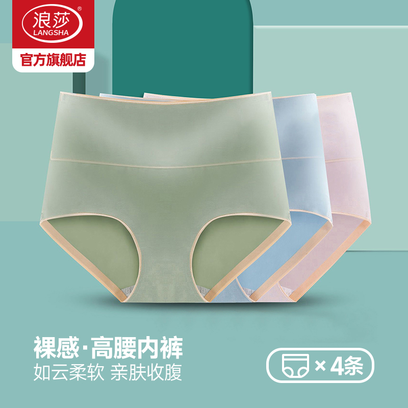 4条浪莎内裤女纯棉收腹高腰内裤性感短裤衩全棉女士内裤三角裤头