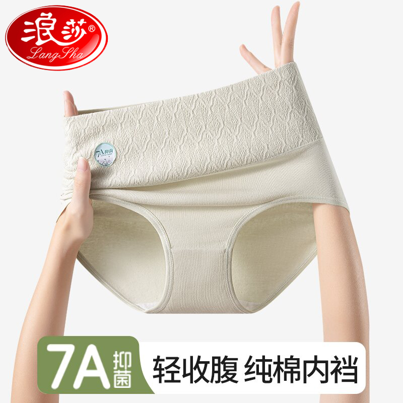 浪莎内裤女2025新款纯棉抗菌高腰收腹强力收小肚子无痕女士三角裤