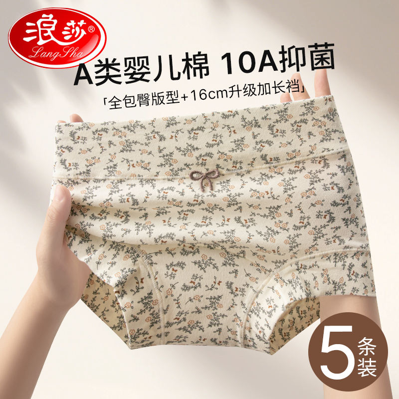 浪莎内裤女款纯棉2025新款100%全棉7a级抗菌裆无痕中腰女士短裤头