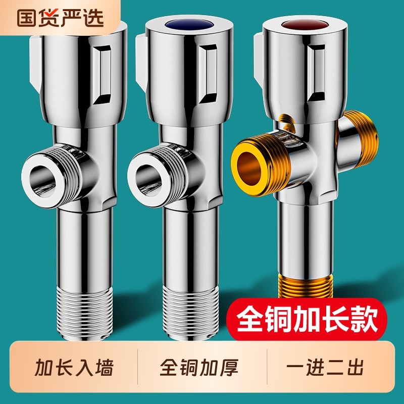 冷热水角阀家用全铜马桶三角阀4水龙头八字阀热水器水阀球阀加长