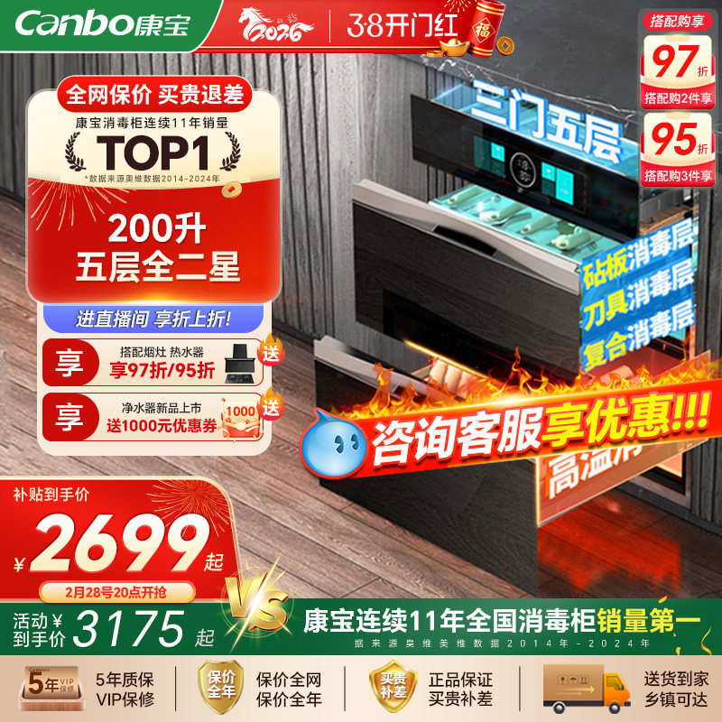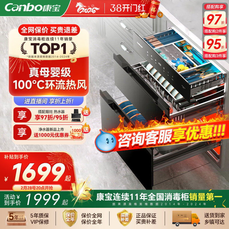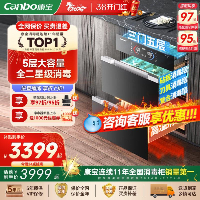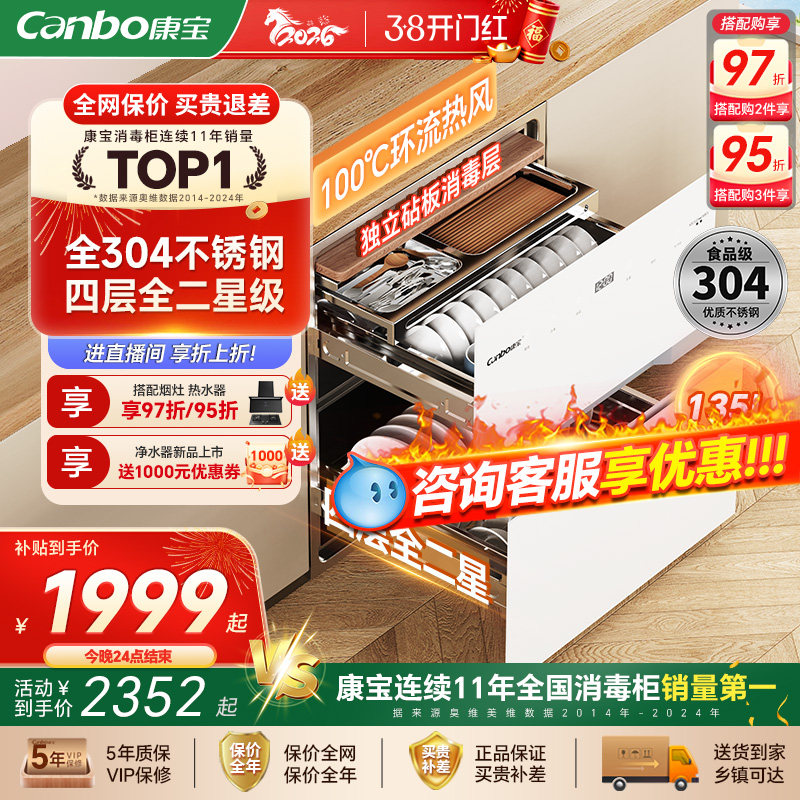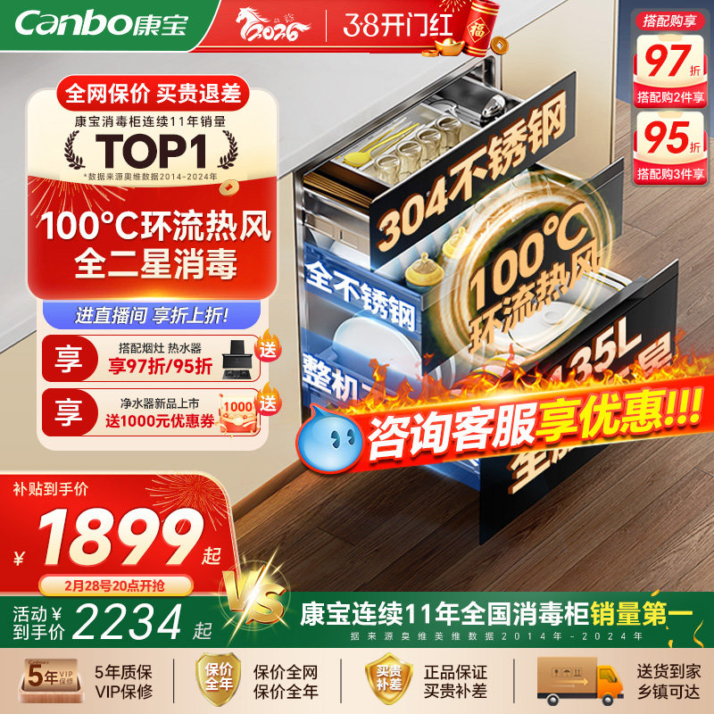 康宝嵌入式消毒柜家用独立三层全二星级高温厨房官方旗舰店EQ1