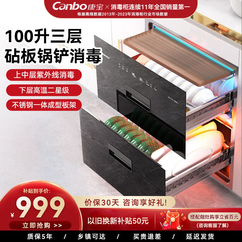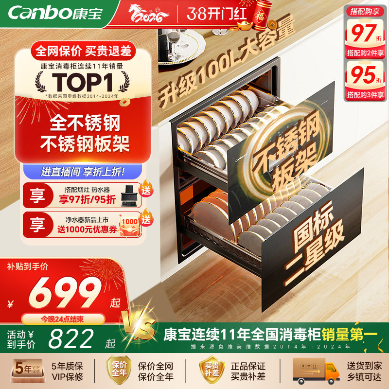 Canbo/康宝 XDZ100-EX011S家用嵌入式消毒柜热风大容量消毒碗筷烘