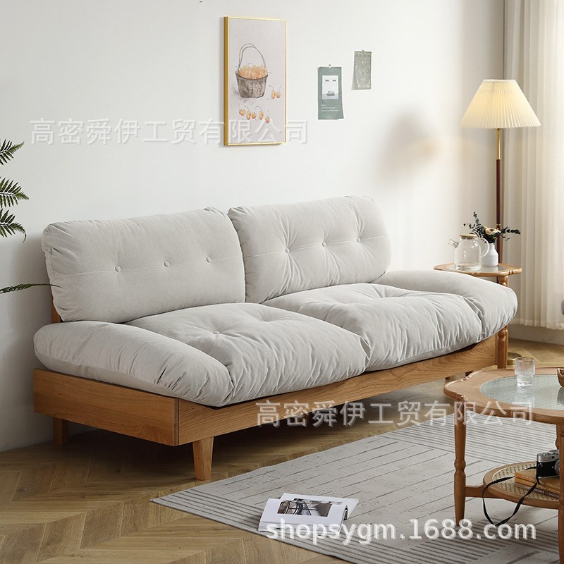 日式实木云朵布艺沙发侘寂风家具双人橡木原木沙发客厅简约小户型