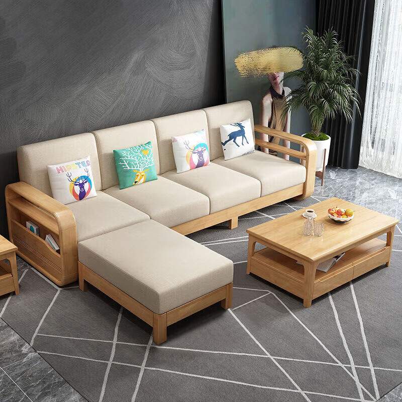 工厂直销北欧原木四人位贵妃沙发橡木全实木高端组合转角沙发布艺