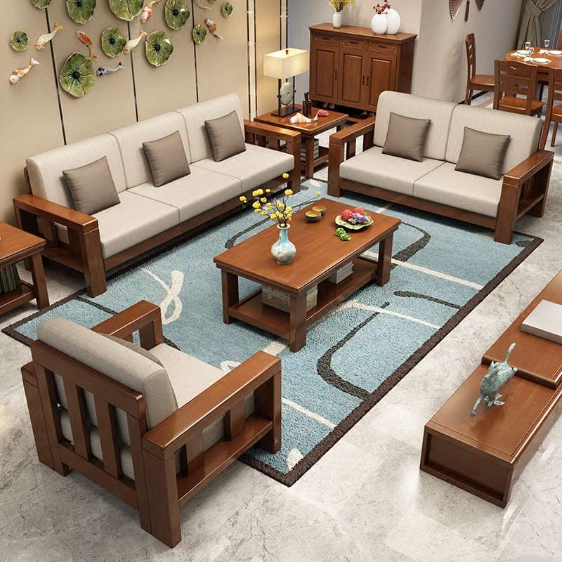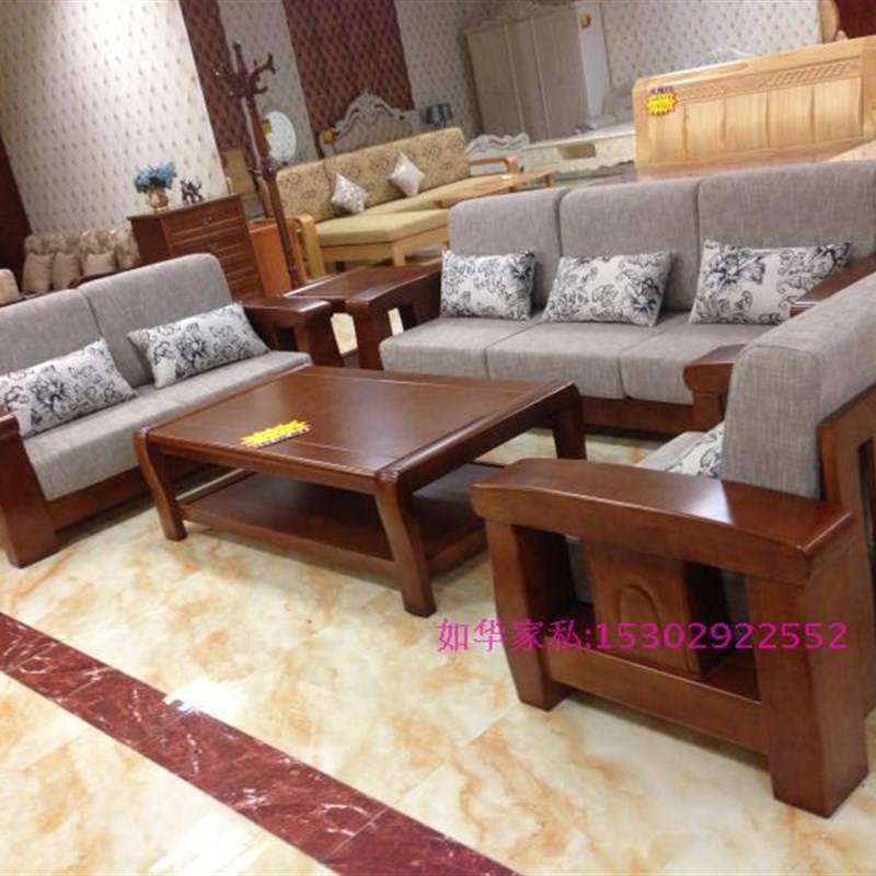 厂家直销实木沙发新中式客厅橡木大户型沙发现代简约布艺转角沙发