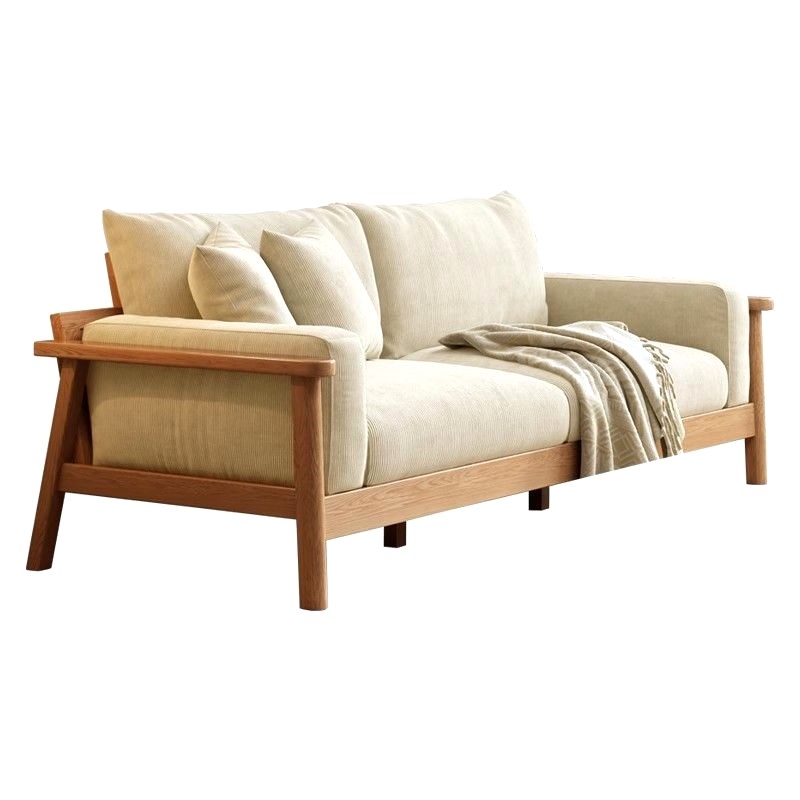 余弦家具实木沙发冬夏两用橡木布艺沙发北欧客厅家用原木直排沙发