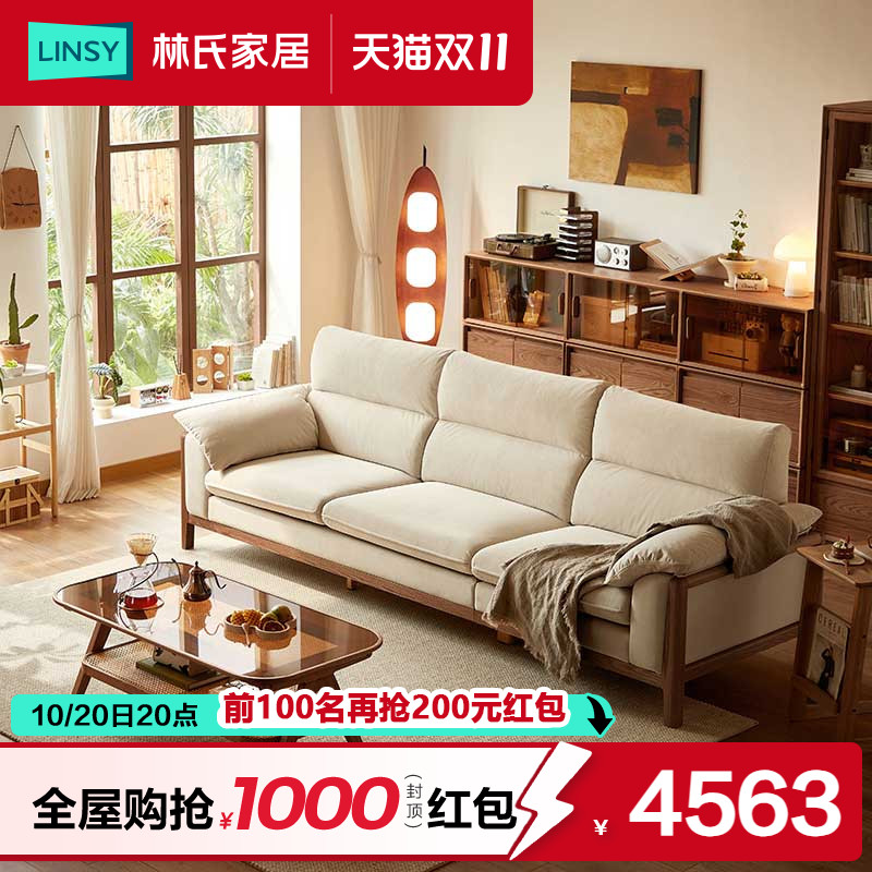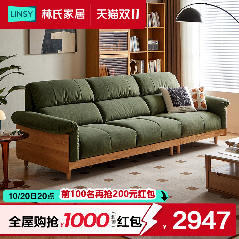 林氏家居橡木实木沙发客厅2025新款广东佛山直排沙发布艺小户型