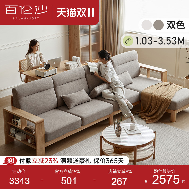 布艺沙发橡木单双现代组合风格小户型三人全家具简约北欧客厅实木
