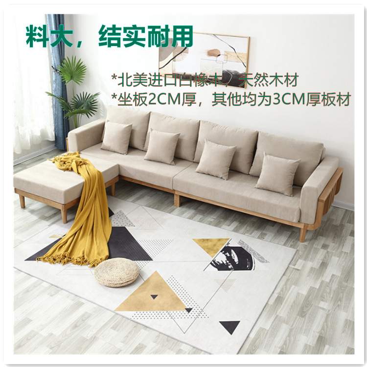 全实木沙发 北欧现代简约小户型客厅家具 白橡木布艺沙发拐角沙发