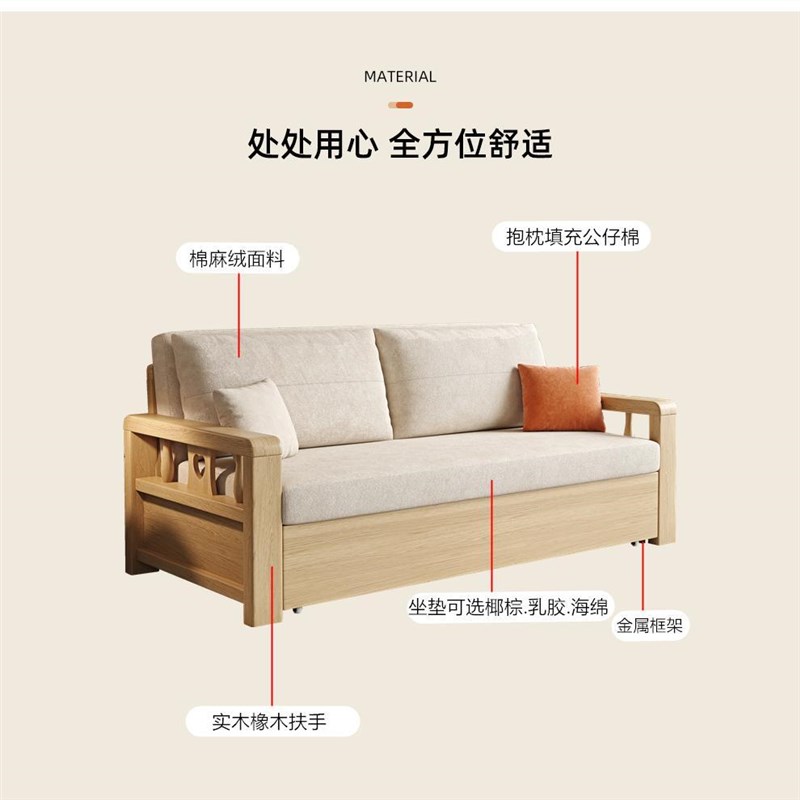 实木沙发床多功能可折叠伸缩客厅两用双人红橡木推拉储物布艺沙发