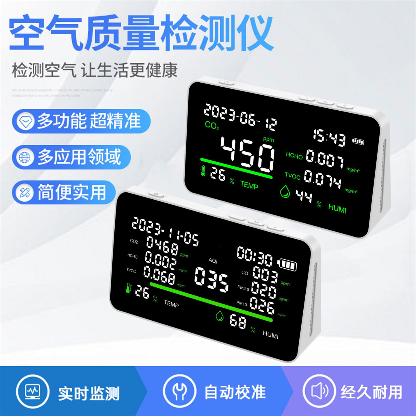 PM2.5多功能空气质量检测仪温湿甲醛浓度监测O2二氧化碳C0传感器