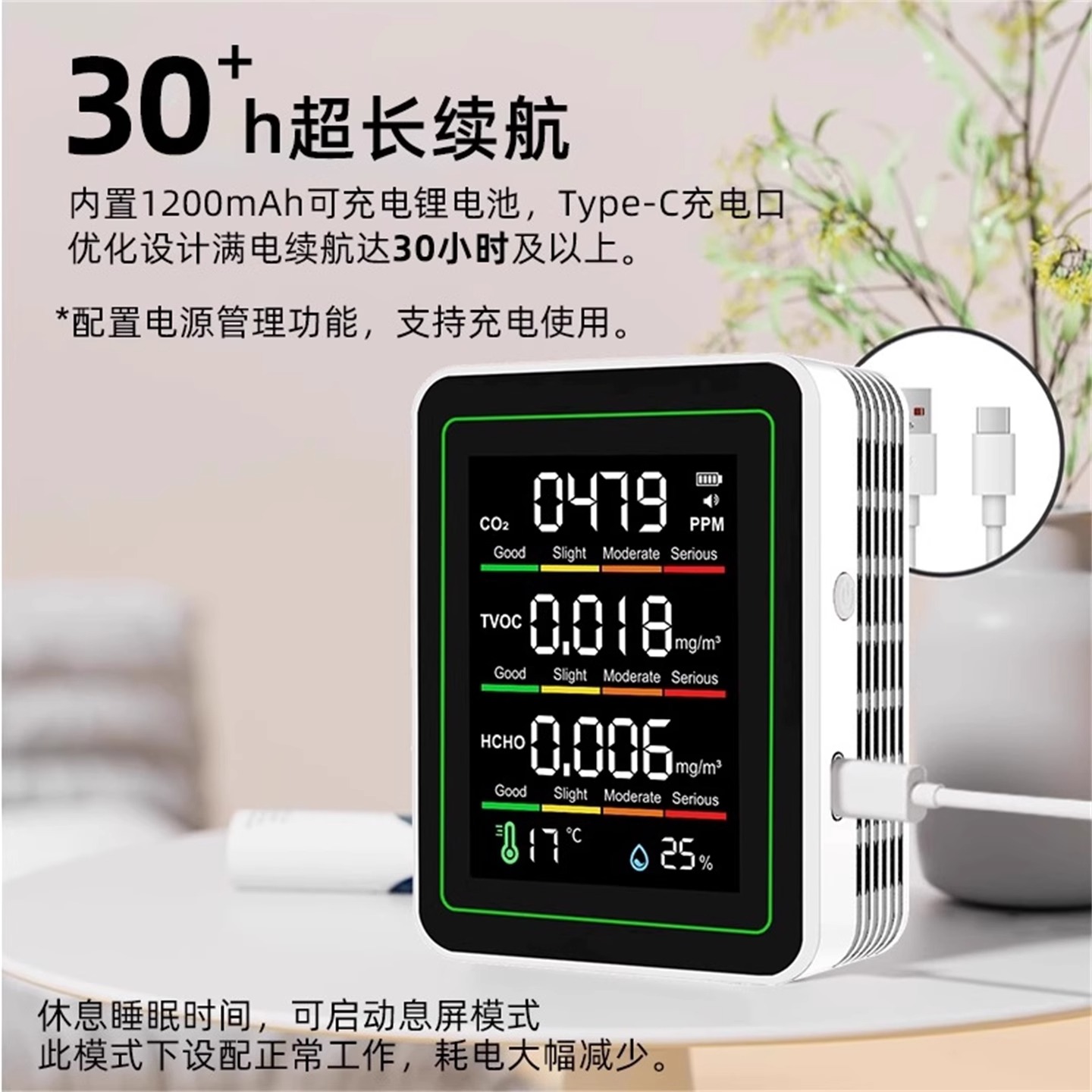 充电空气质量检测仪TVOC家用室内PM2.510甲醛一二氧化碳温湿度计