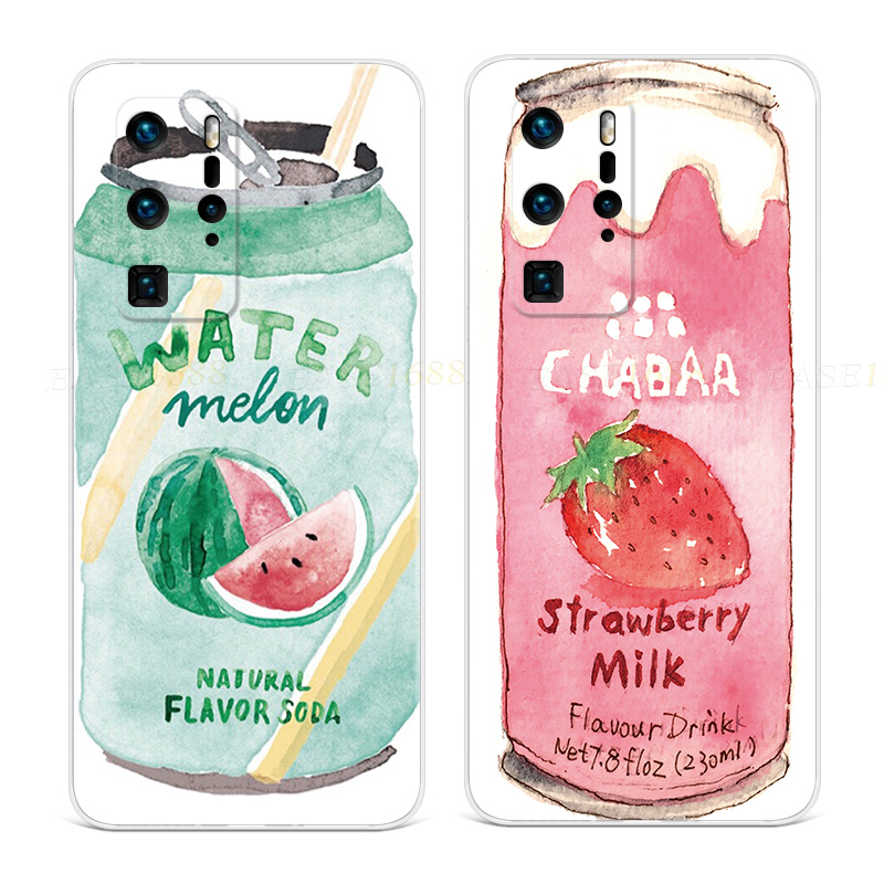 日韩适用于华为p20pro手机壳p40p60草莓牛奶p9p10plus插画+软硅胶