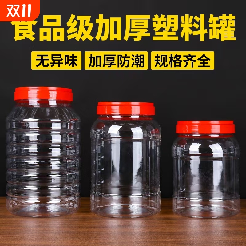 密封罐食品级五谷杂粮塑料瓶空瓶子蜂蜜透明泡菜罐子厨房储物罐大