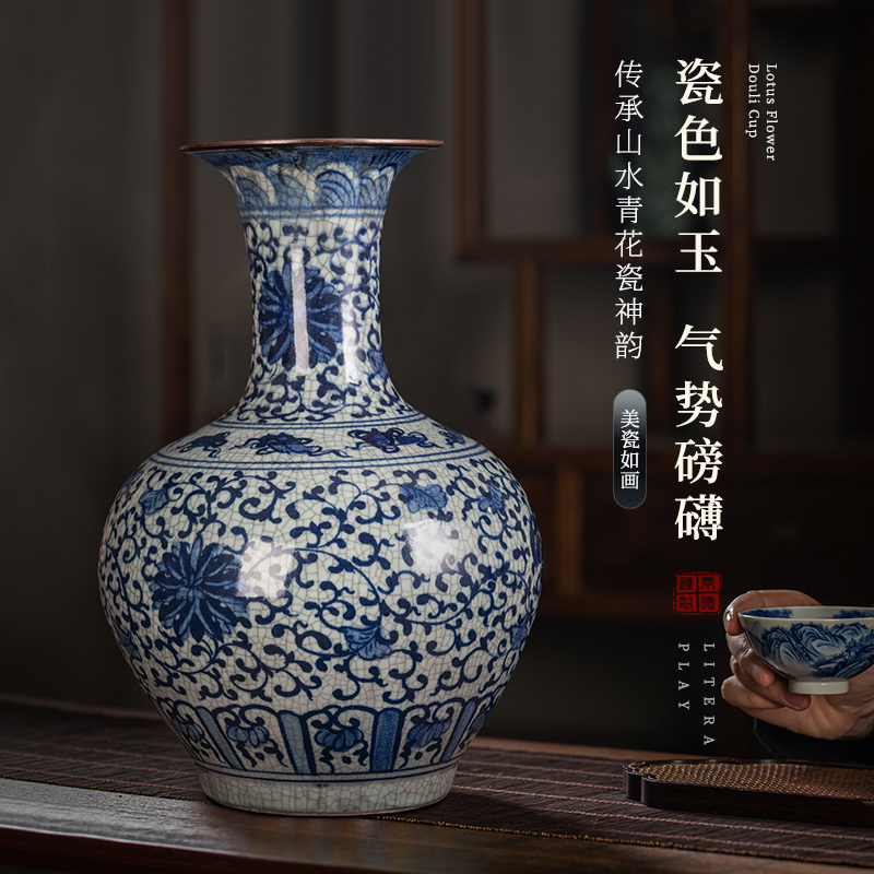 景德镇陶瓷器花瓶仿古官窑中式家居大号青花瓷瓶客厅电视柜装摆件