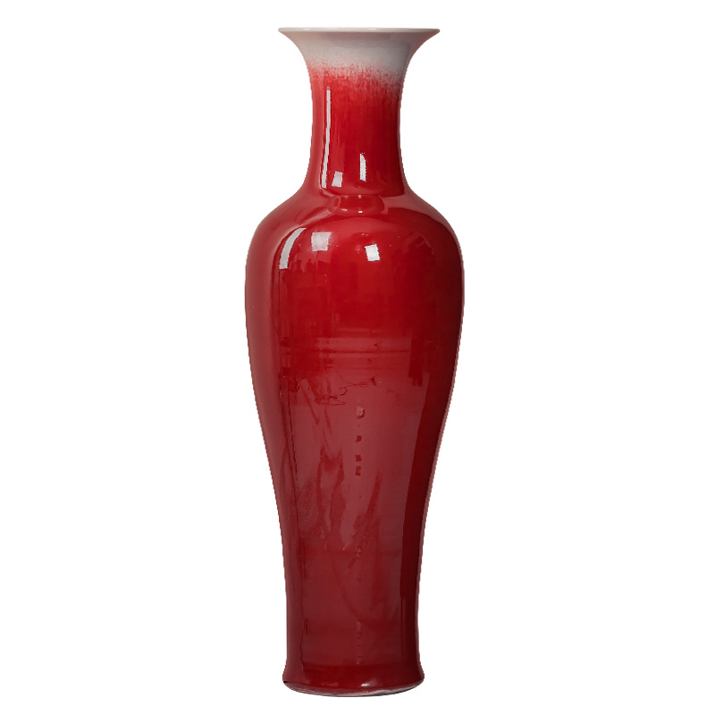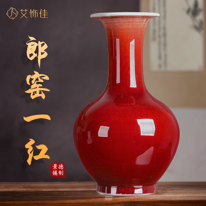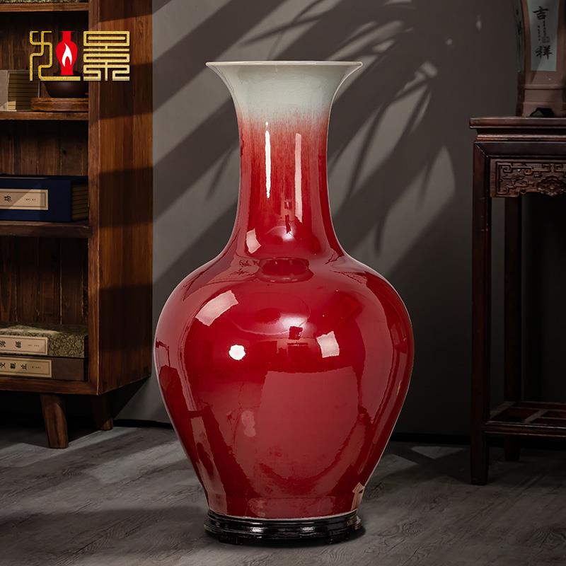 景德镇陶瓷器郎红釉落地大花瓶新中式大号瓷瓶客厅摆件插花装饰品