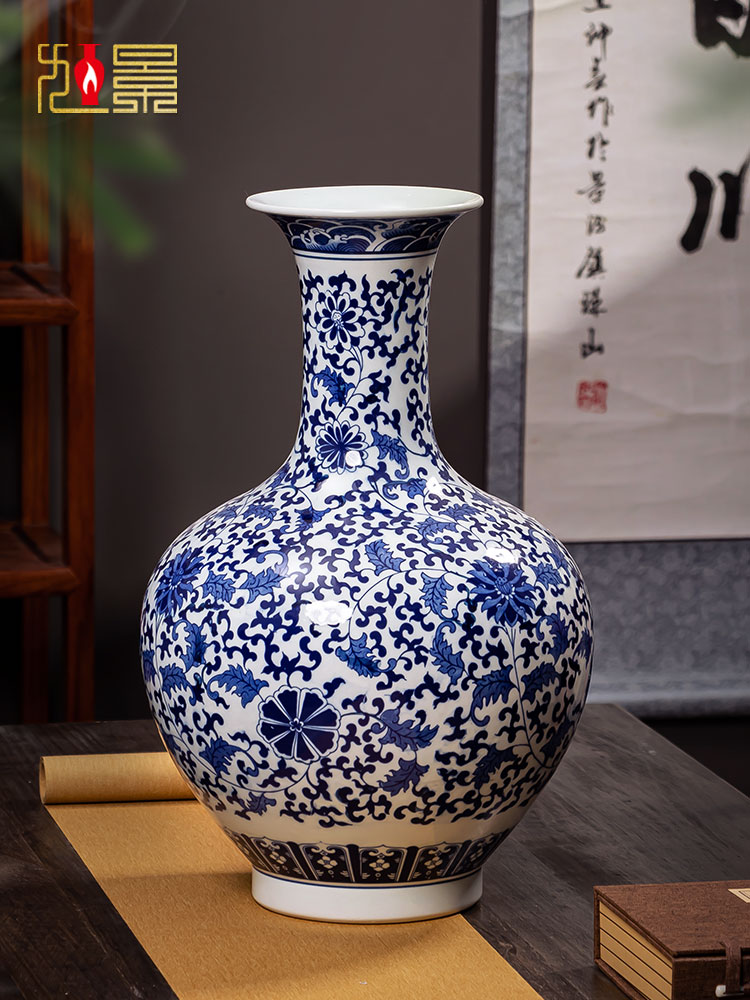 景德镇陶瓷器青花瓷花瓶新中式彷古瓷瓶客厅摆件装饰覆古落地大号