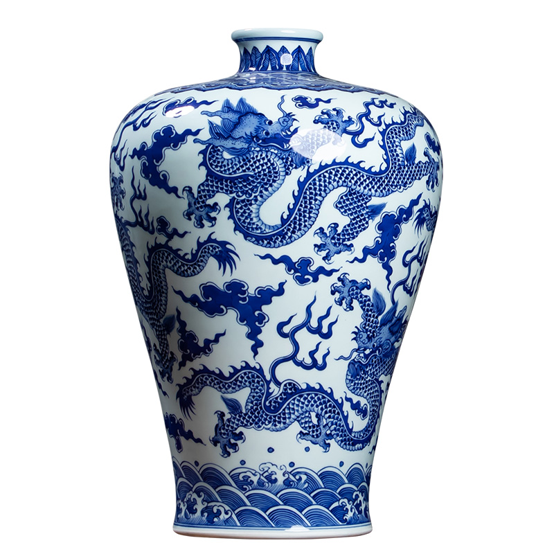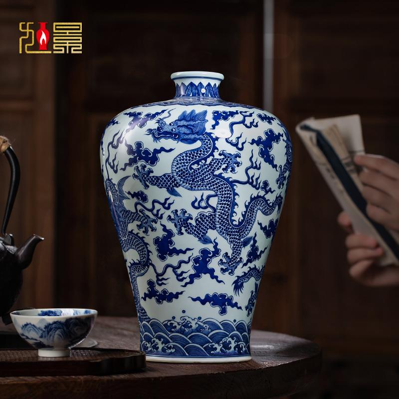 景德镇陶瓷花瓶中式龙纹梅瓶仿古瓷瓶客厅摆件高档瓷器家居装饰品