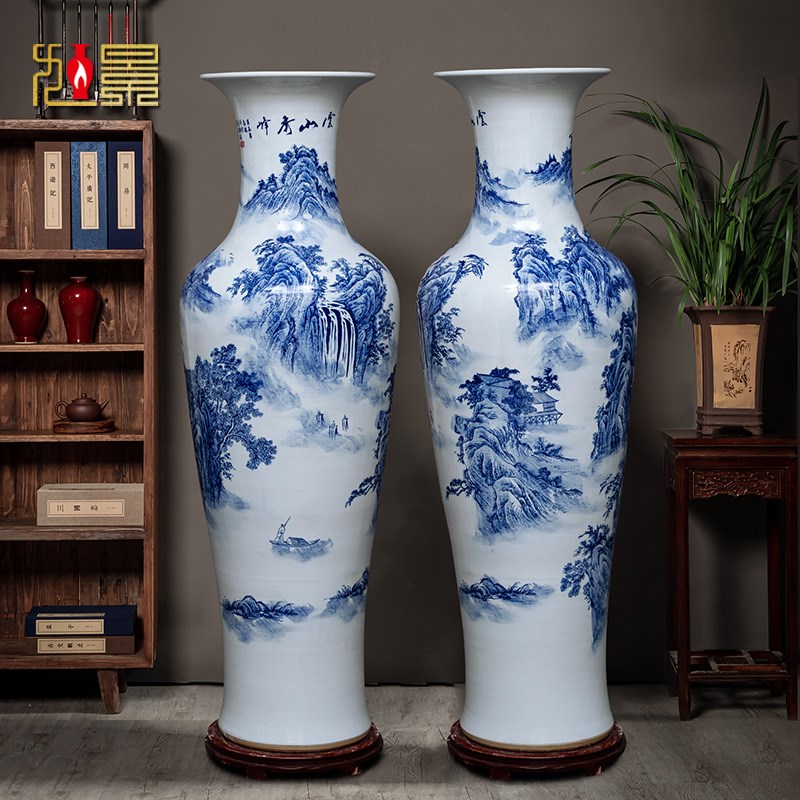 景德镇陶瓷落地大花瓶仿古青花瓷高款瓷瓶客厅摆件酒店别墅装饰品