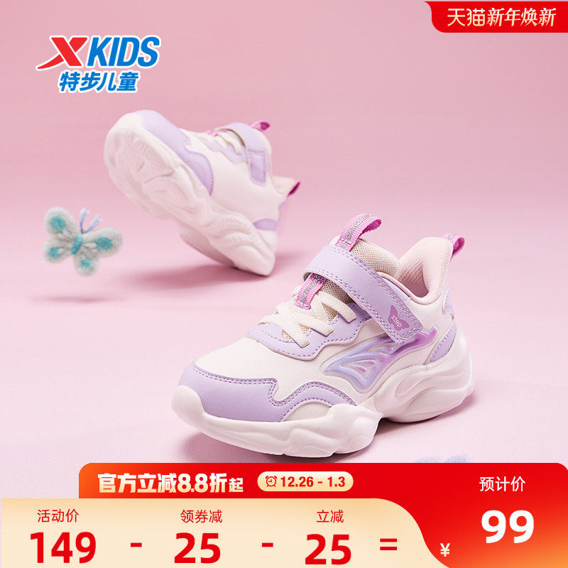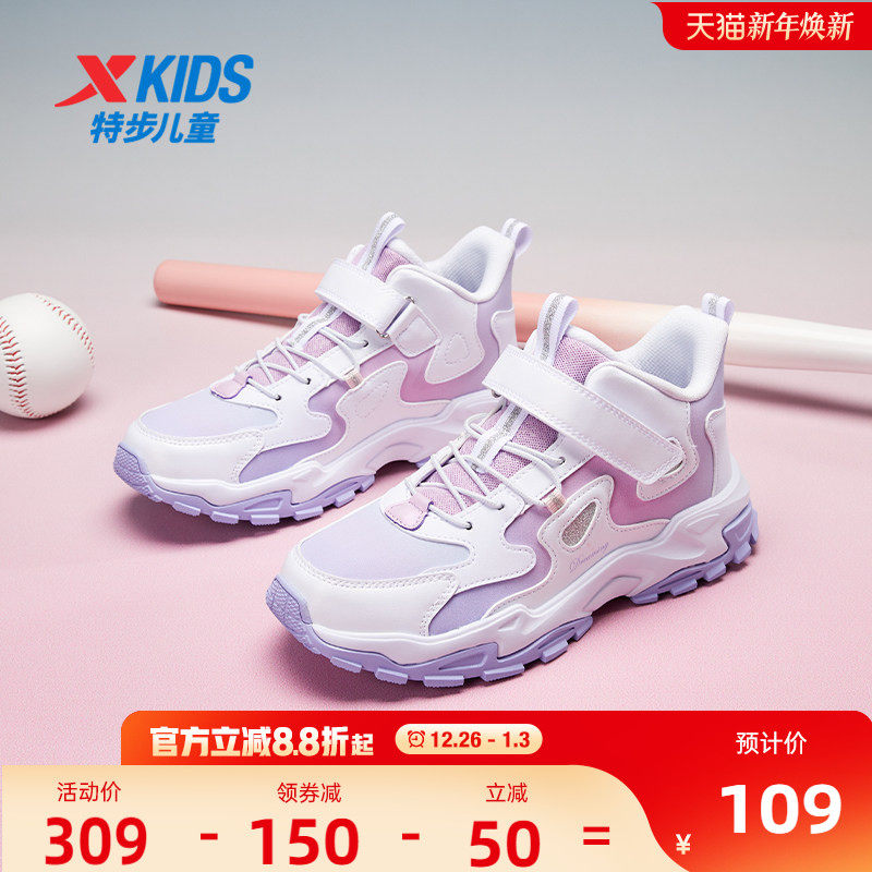 特步童鞋秋季新款女童魔术贴保暖休闲鞋儿童运动鞋小童鞋防滑鞋子