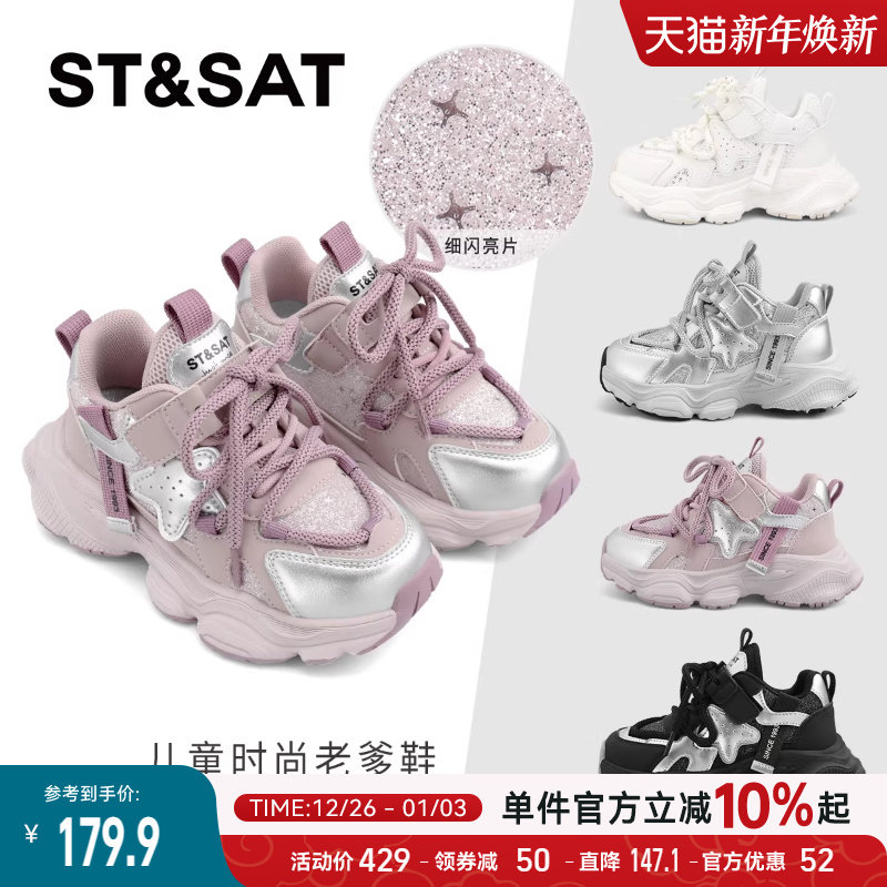 百丽童鞋女童老爹鞋儿童休闲运动鞋2025秋季新款男童跑步鞋中大童