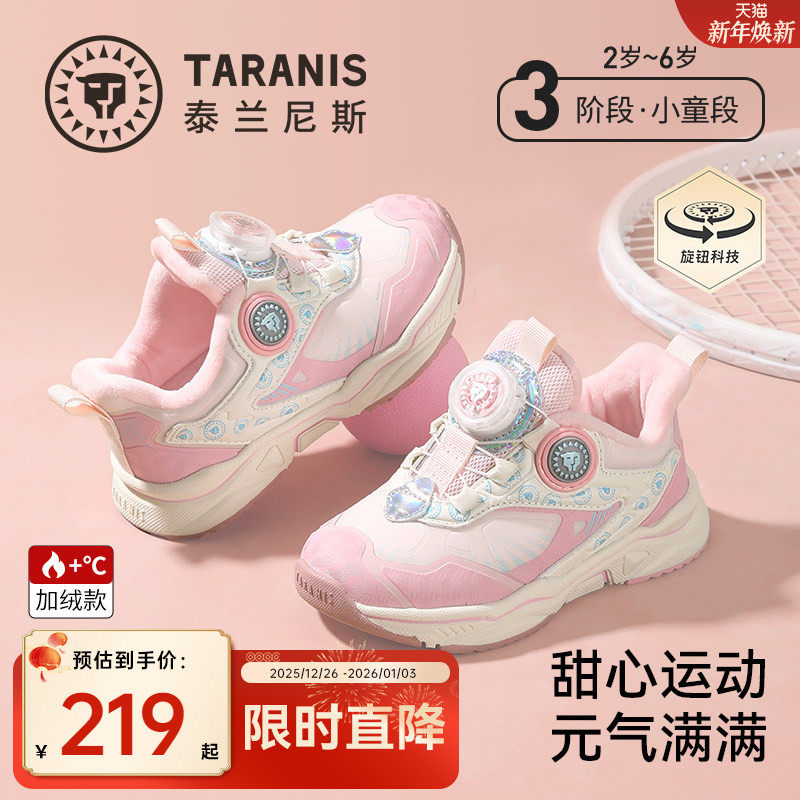 泰兰尼斯儿童运动鞋秋季冬季男女童跑步鞋加绒保暖时尚休闲闪灯鞋