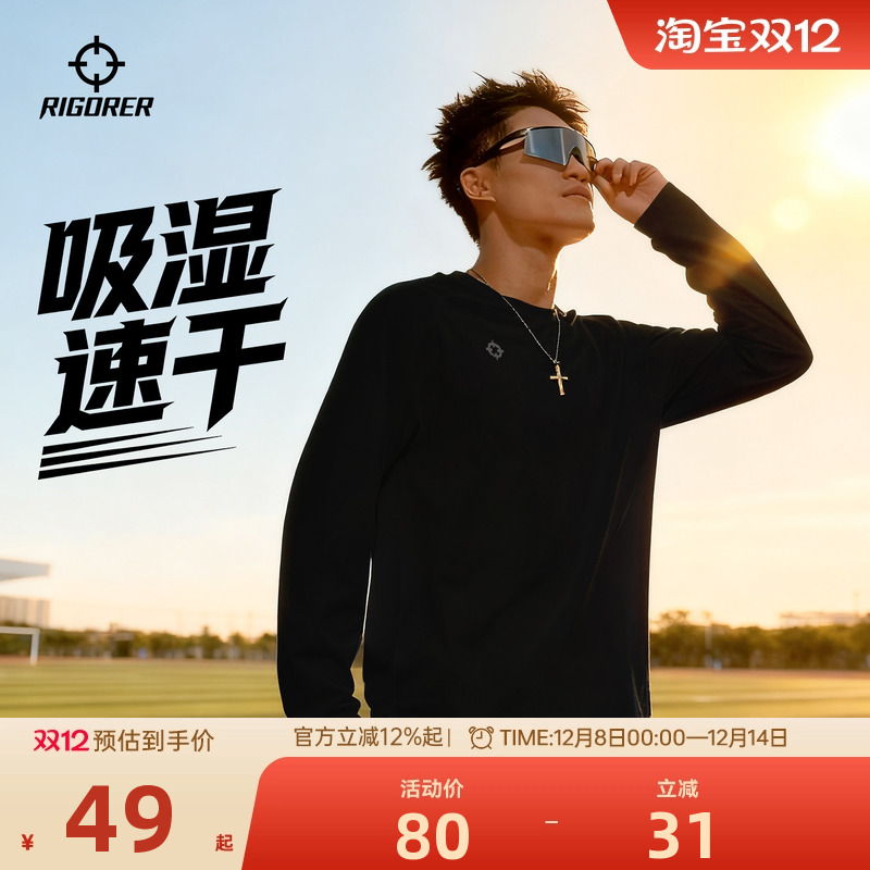 准者跑步长袖运动T恤男子秋冬健身速干专业运动户外骑行服薄上衣
