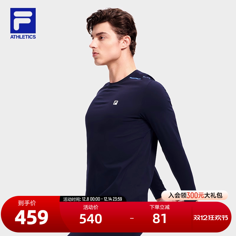 FILA 斐乐官方男子长袖T恤2024秋季新款网球训练抗菌运动健身上衣