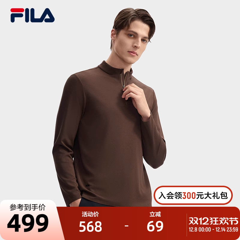 黄景瑜同款 FILA 斐乐官方男子长袖T恤2024冬季新款休闲基础内搭