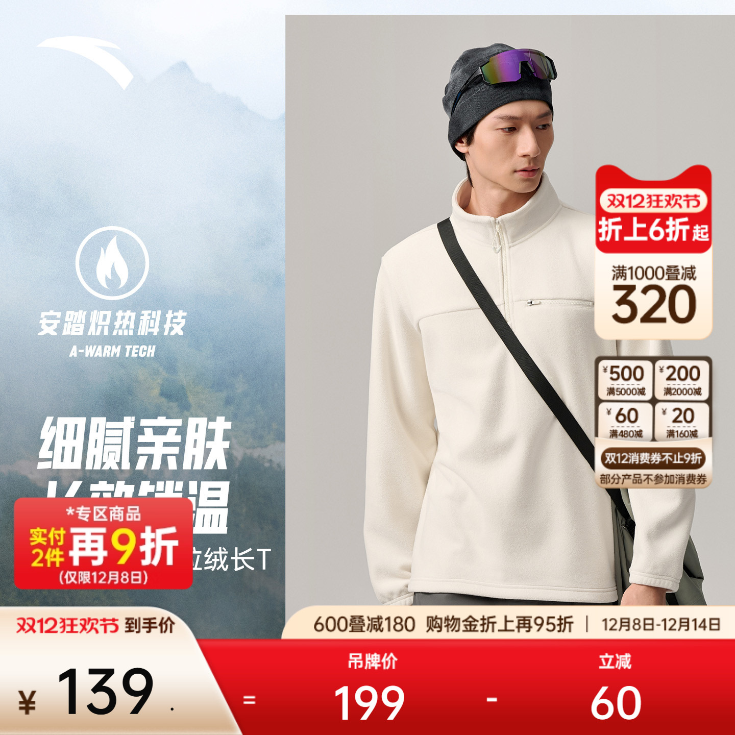 安踏火壳丨大地之壳摇粒绒户外长袖t恤男子半拉链立领打底抓绒衣