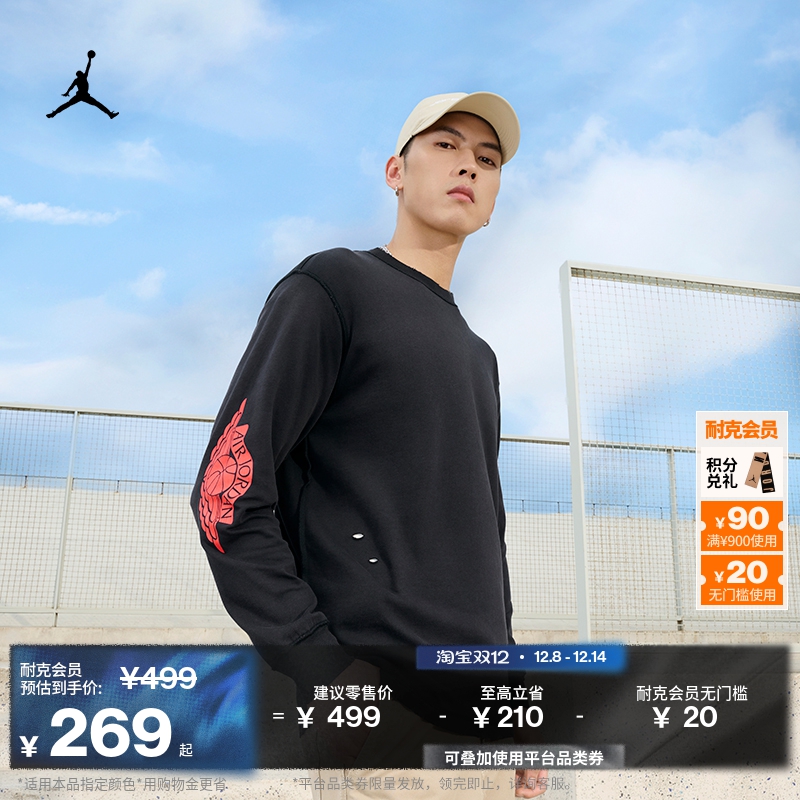 JORDAN耐克男子长袖T恤秋运动休闲圆领破洞水洗针织衫IB3135-010