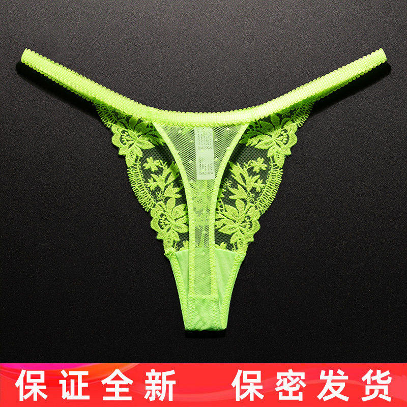 欧美法式蕾丝丁字裤女性感纯欲无痕内裤健身刺绣网纱透明花边T裤