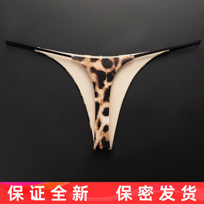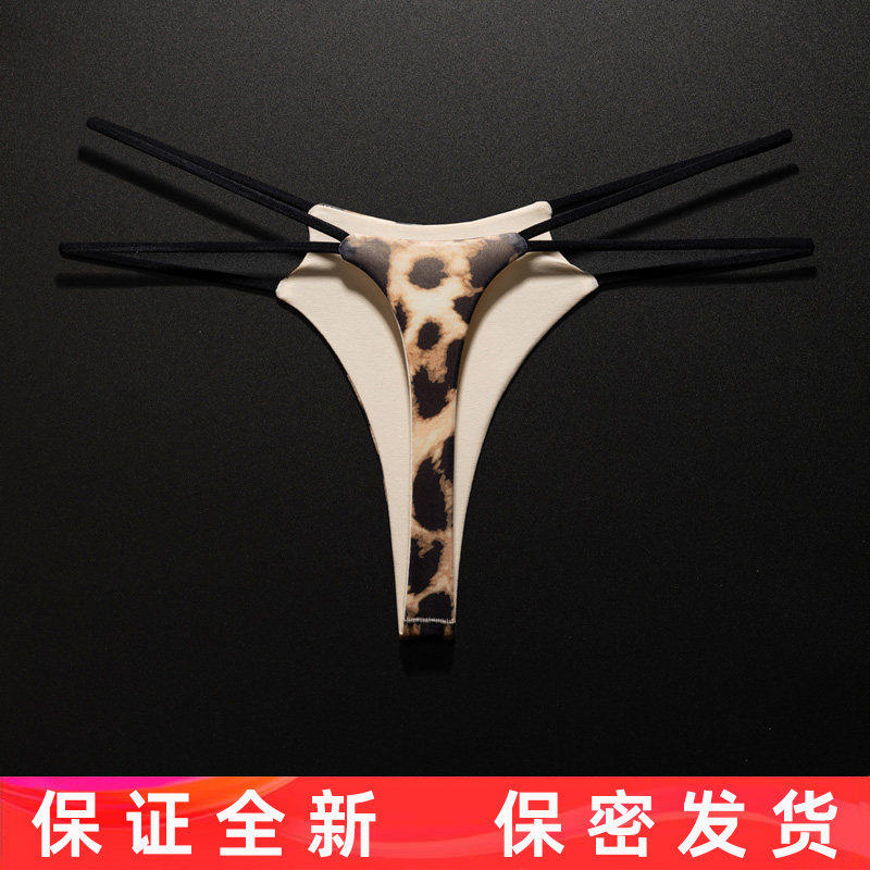 豹纹丁字裤女性感蕾丝无痕内裤冰丝火辣诱惑大码纯欲运动健身轻薄