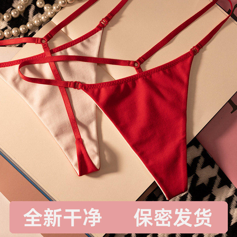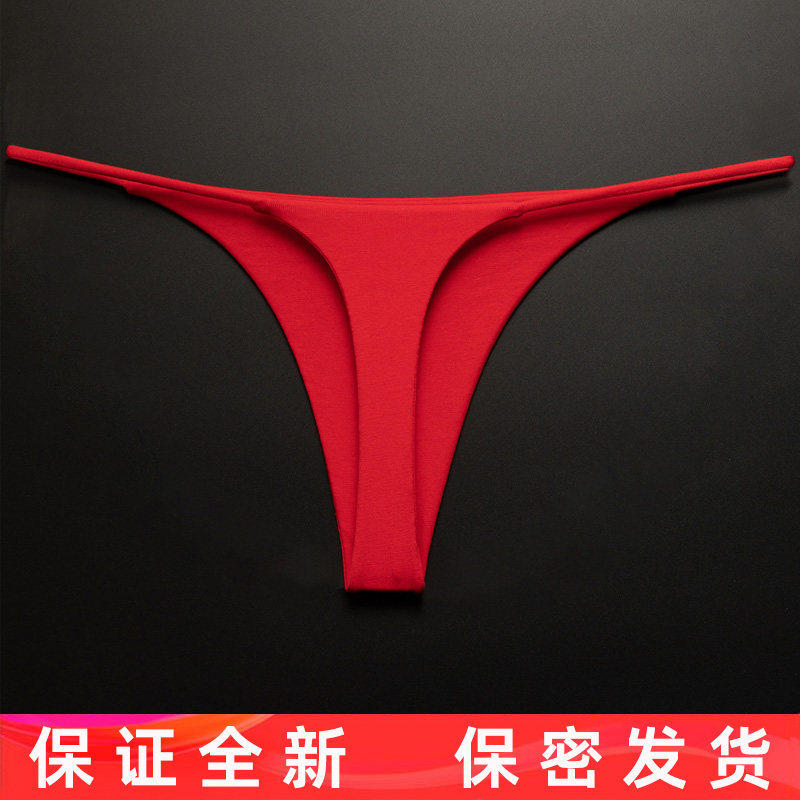 纯棉大红色丁字裤女性感薄无痕内裤小低腰学生少女本命年结婚T裤