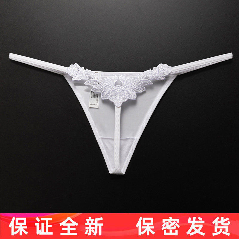 欧美火辣蕾丝丁字裤女性感撩人刺绣花朵可调节细带三角裤薄款诱惑
