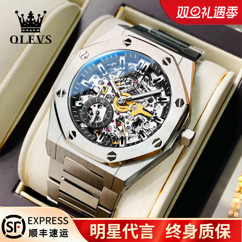 正品欧利时男士手表方形酒桶机械表男全自动镂空防水品牌腕表十大