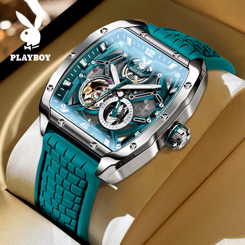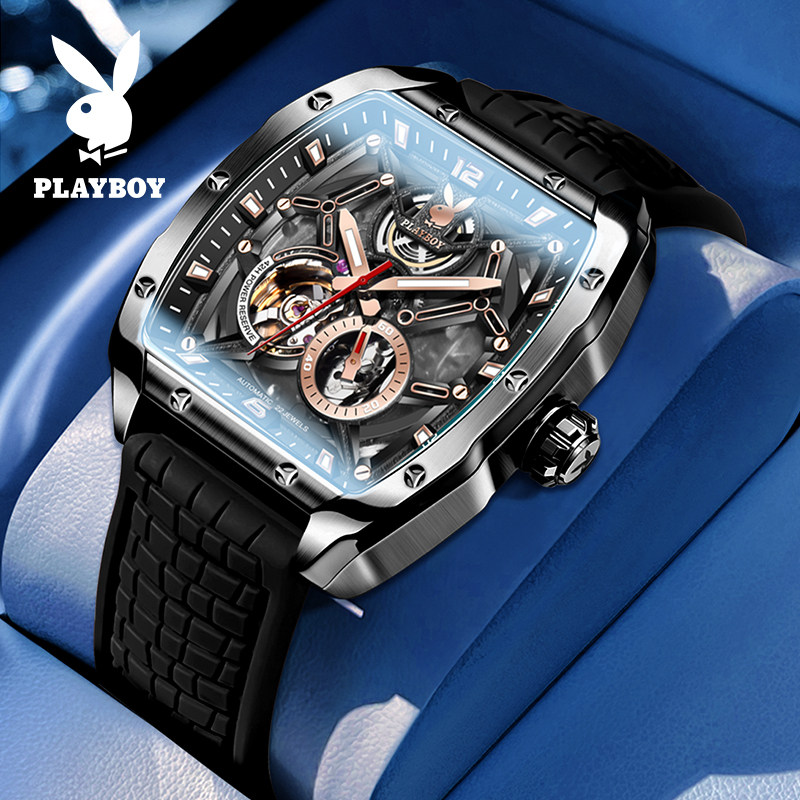 官方正品花花公子男士手表镂空方形酒桶机械表理查德品牌学生男表