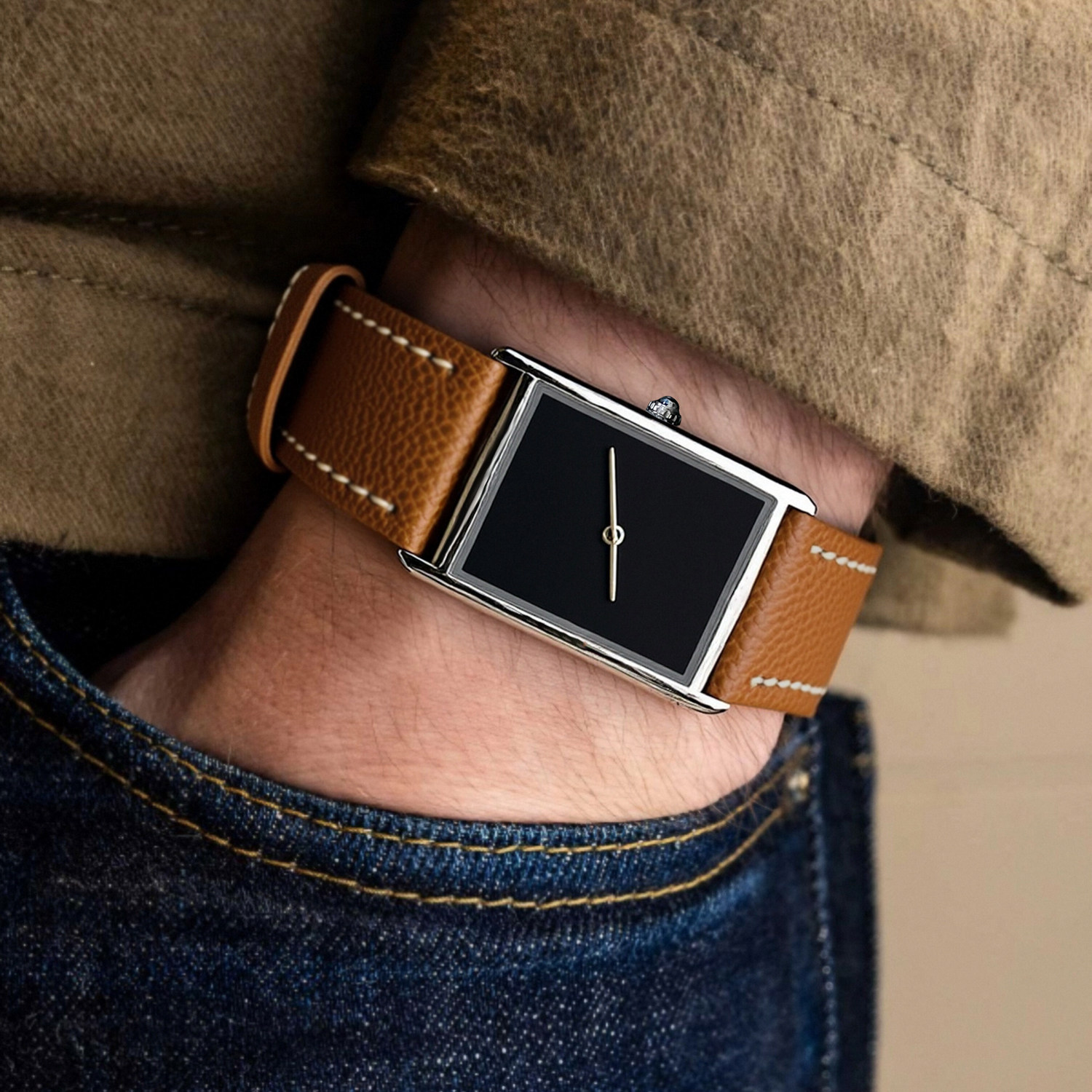 ATOWAK巍刻真皮手表男款全自动机械表男士商务创意方形小手腕手表