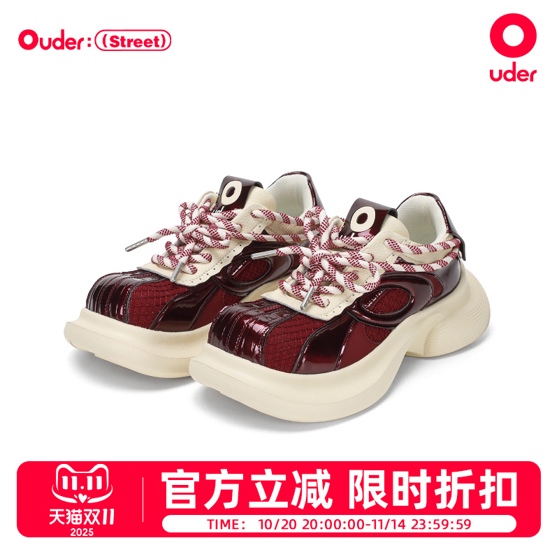 Ouder 休闲鞋女春季新款厚底增高方糖方头鞋松糕大头鞋复古老爹鞋