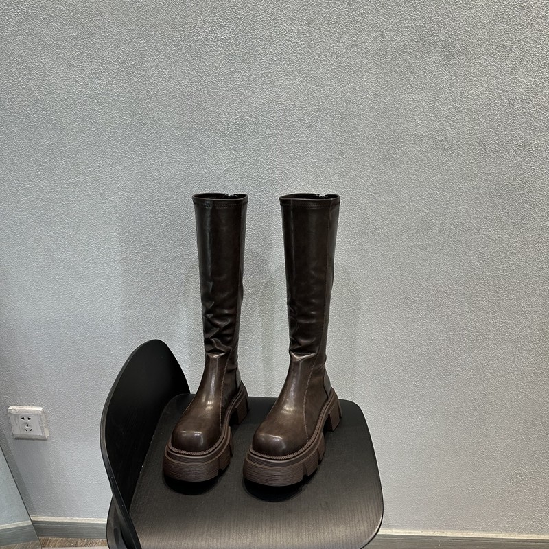 高筒瘦瘦靴女2025年秋冬新款欧美复古时尚方头厚底松糕轻便骑士靴