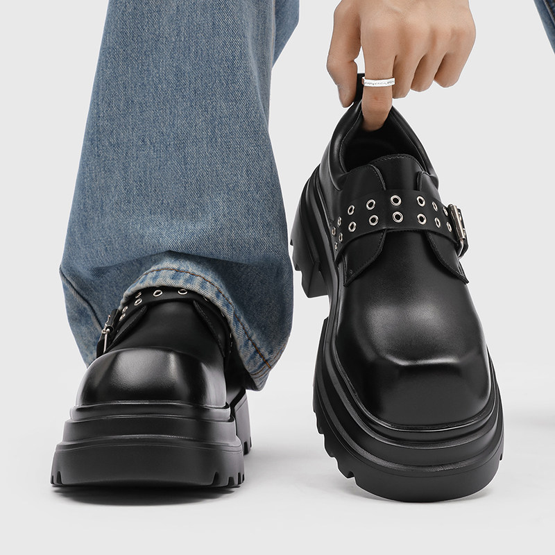 小众方头德比鞋男款真皮增高7cm松糕鞋高级感朋克大头厚底鞋潮