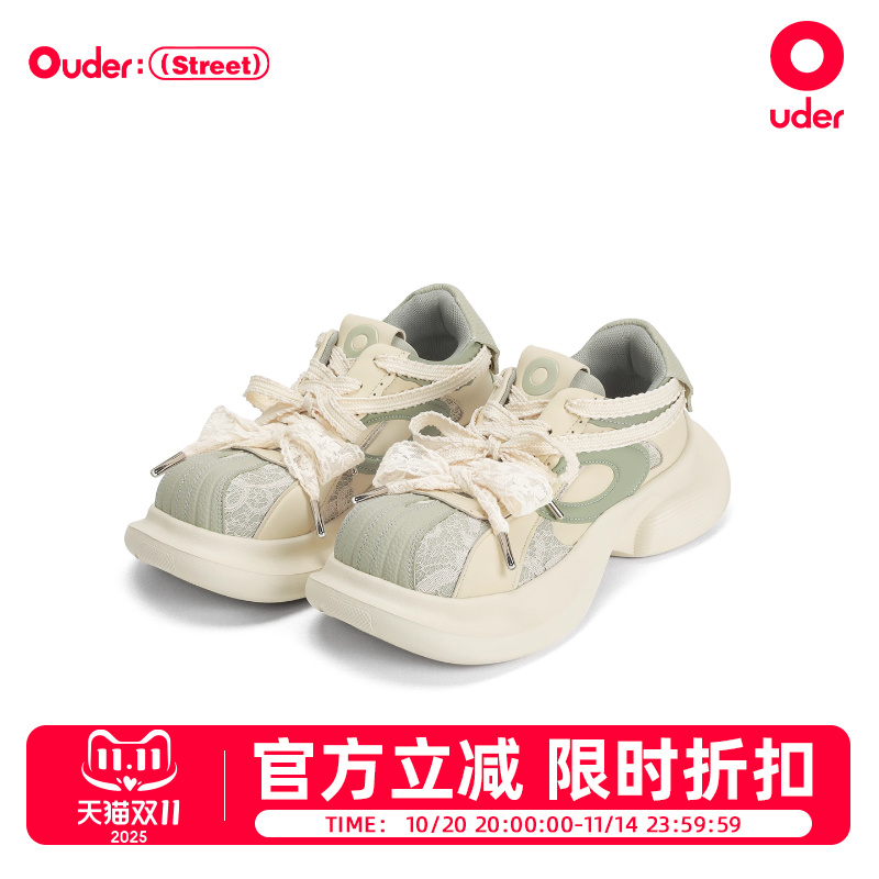 Ouder 休闲乐福鞋女厚底增高老爹鞋春新款方头蕾丝松糕方糖大头鞋