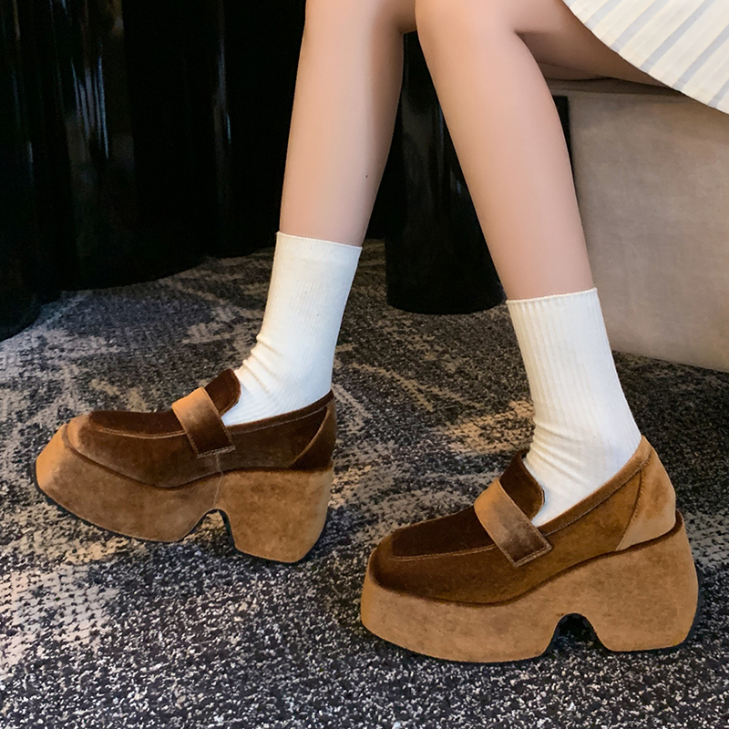 厚底绒面乐福鞋女2025春季新款英伦风小皮鞋时尚高级感方头松糕鞋
