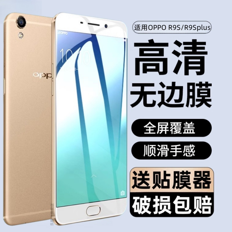 适用oppor9s钢化膜OPPOR9手机r9sk全屏plus防摔蓝光R9m/tm原装OPPOR9plus彩膜r9s刚化贴膜0PP0无白边R9splus