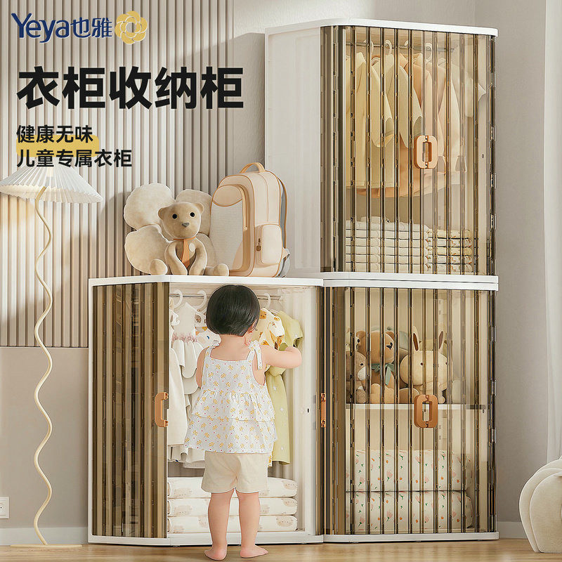 也雅儿童衣柜宝宝小衣橱婴儿挂衣卧室家用置物架免安装收纳柜储物