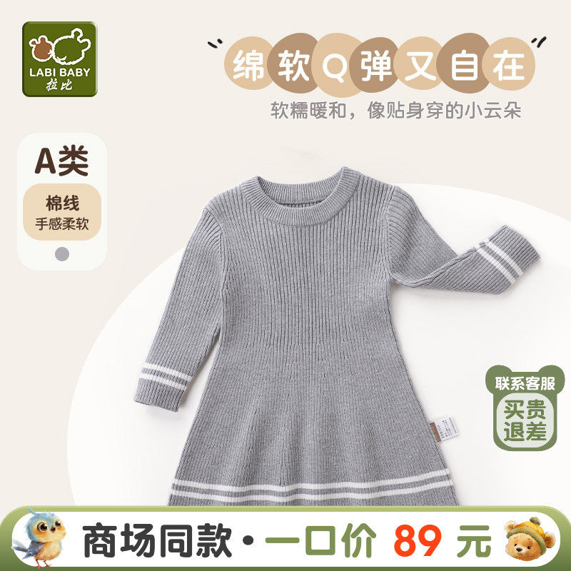 拉比童装连体衣2025秋冬女童裙子宝宝保暖裙子洋气打底棉线连衣裙