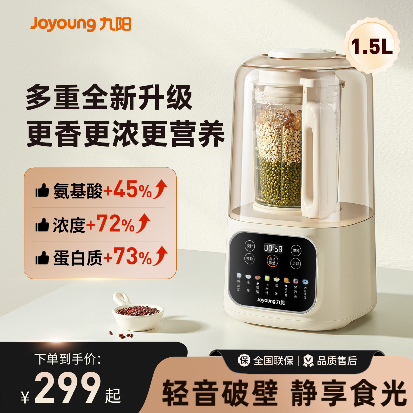九阳豆浆机全自动家用小型多功能轻音破壁机烹饪机官方搅拌料理机