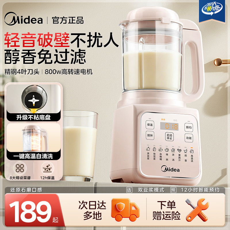 美的破壁机家用全自动无渣多功能豆浆料理榨汁一体轻音2025新款静